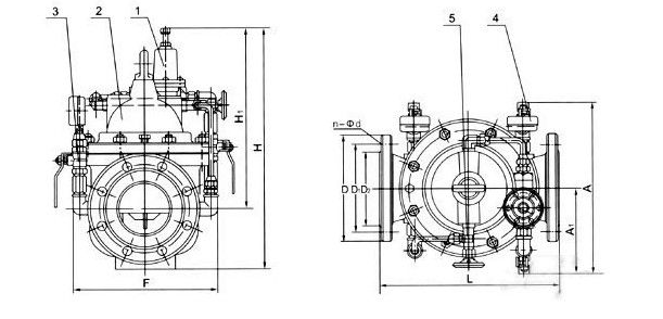 1、导阀2、主阀3、球阀4、压力表5、针表